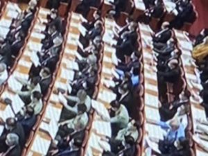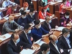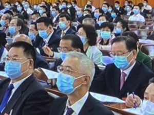 2、主席台上第一排重要领导都沒有戴口罩,不知道是否有讲究?