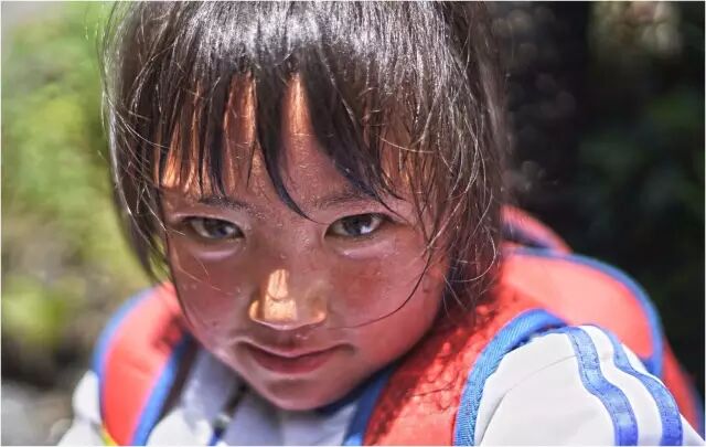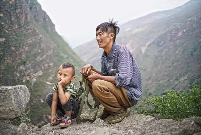 在这个地方采访之后,我了解到这个村里面有十八个孩子在村下面的小学里读书。这个小学它的落差只有八百米,但是一般外面人进来得三到四个小时才能上得上去。小孩的体能非常好,一般用三个小时就可以,像猴子一样爬得特别快。后来我就拍摄了天梯上的放学路。