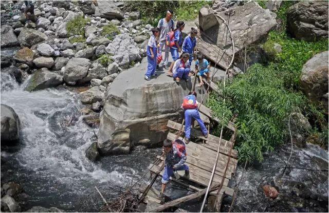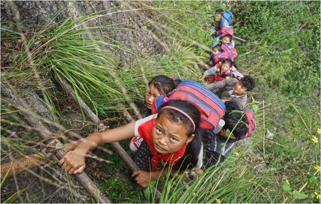 我就跟着他们去绕道走。绕了六个半小时,走的都是断桥、隧洞、泥石流,所以天梯这条路反而是最直接的一条路。孩子们走下来之后说,我再也不想走这条路了。家长说,我宁愿不让孩子上学也不愿意再绕道了。